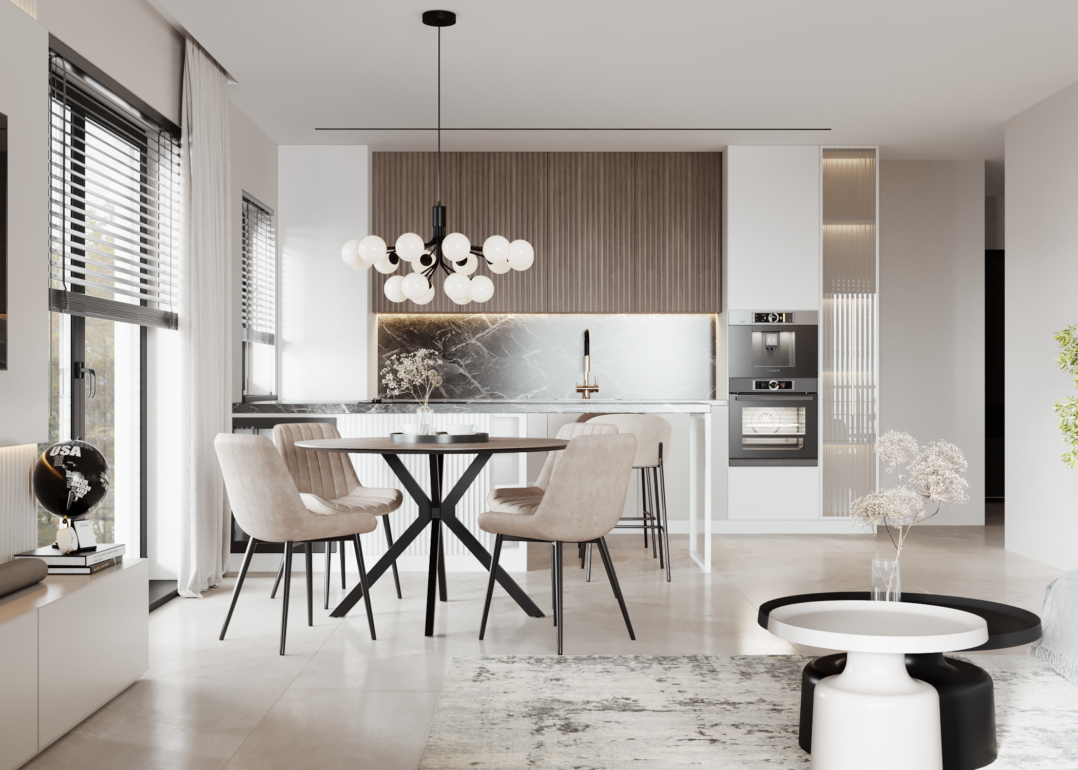 Er ist Fotograf. Kein Mensch der Masse, keiner, der viel braucht. Seine 77 Quadratmeter sind wie er: klar, reduziert und ehrlich. Im Wohnzimmer stehen zwei Dinge, die zählen: Seine Kamera und ein alter Plattenspieler. Am Abend, wenn die Sonne durch die großen Fenster fällt, sitzt er auf dem Boden, trinkt Rotwein, entwickelt Ideen. Seine Küche ist klein, aber voller Gewürze aus aller Welt. Freunde sagen: „Hier riecht es nach Leben.“ Er lächelt, denn genau das wollte er.